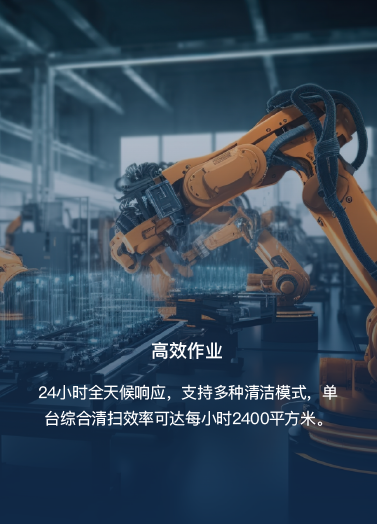 24小時全天候響應(yīng),支持多種清潔模式,單臺綜合清掃效率可達(dá)每小時2400平方米。